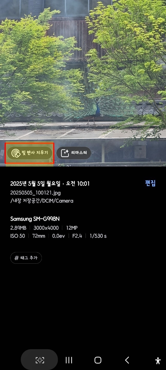 빛 반사 지우기 버튼도 사진에 따라 있거나 없을 수 있겠어