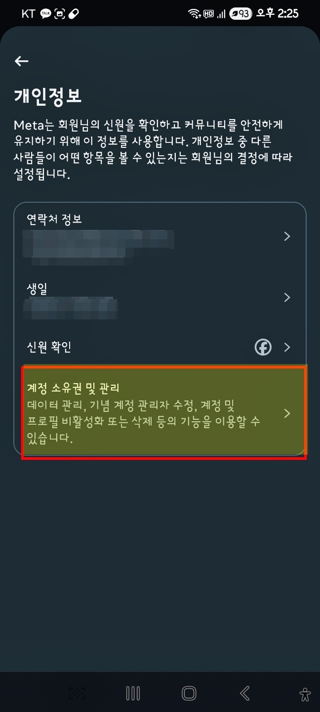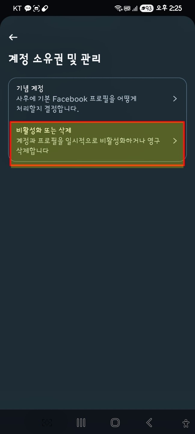 계정 소유권 관리를 선택하고 비활성화 또는 삭제를 선택해 줘
