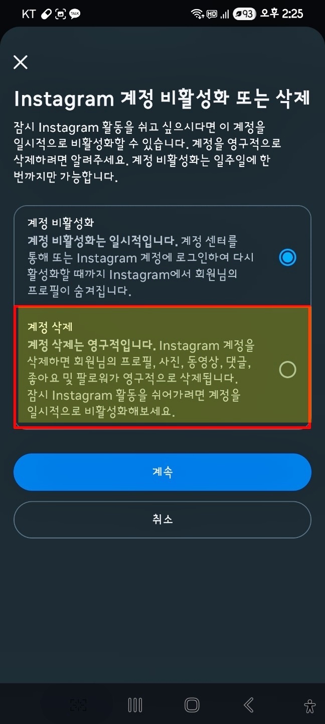 삭제를 진행하면 등록했던 게시물 등 삭제되니 신중히 진행해 줘