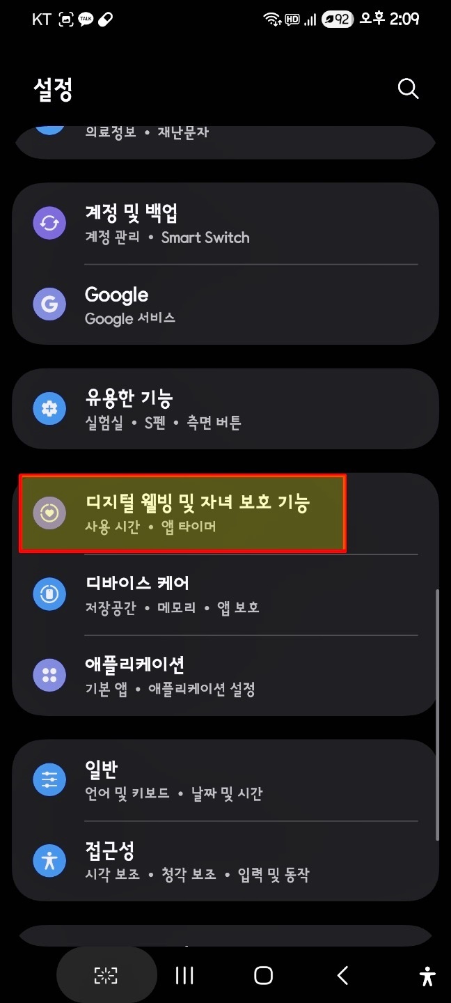 핸드폰 설정을 통해 디지털 웰빙 및 자녀 보호 기능을 선택해 줘