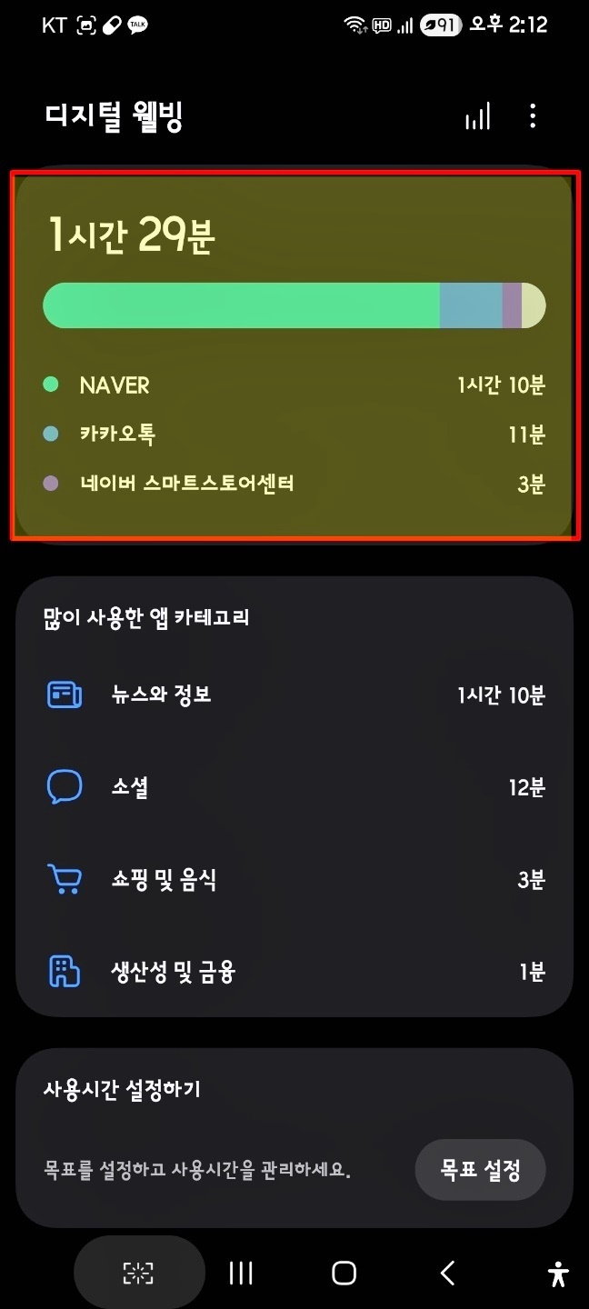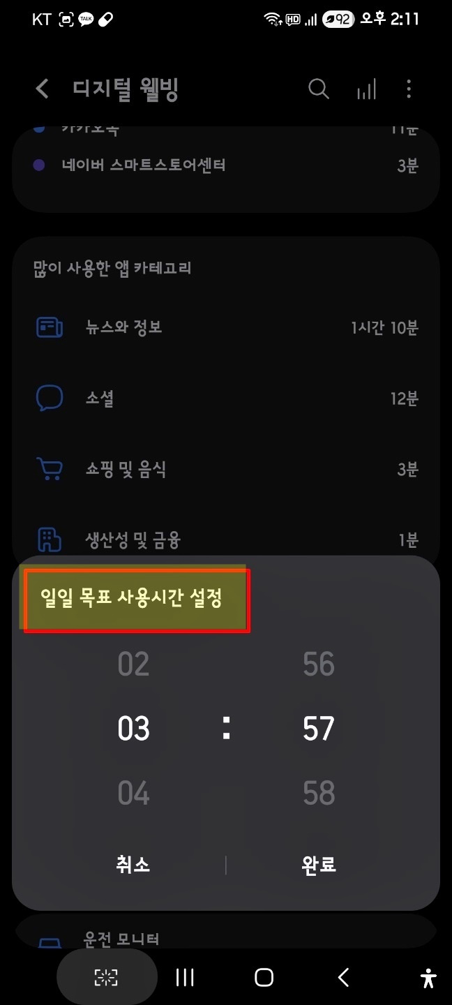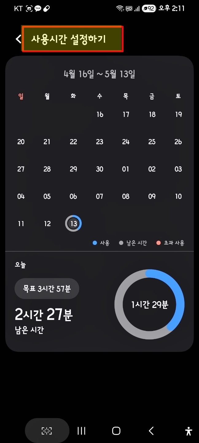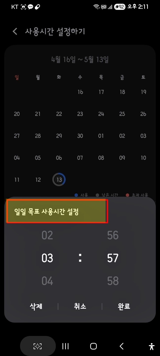 목표 설정을 이용해 일일 목표 사용시간 설정을 지정해 줘