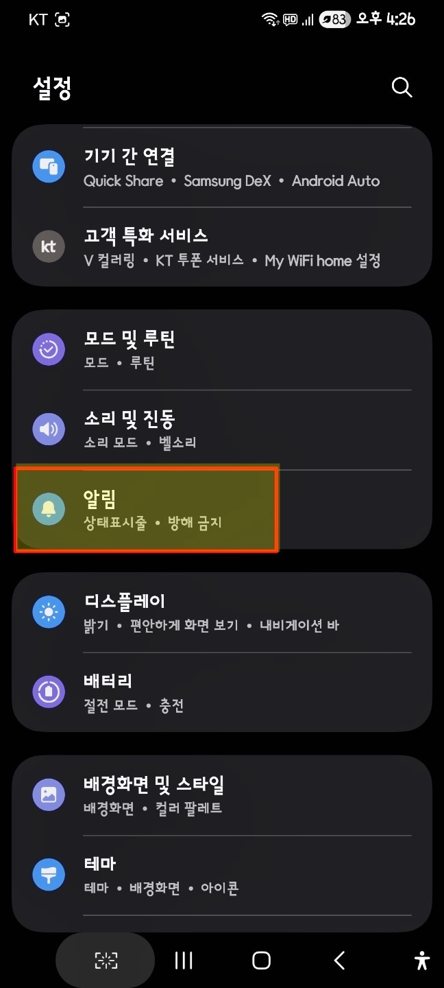 또는 핸드폰 설정을 통해 알림을 찾아줘