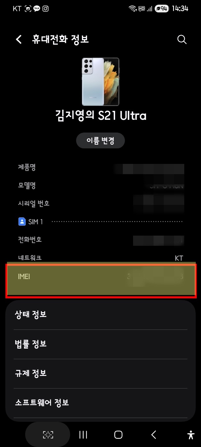 imei 번호는 휴대폰 설정을 통해 휴대전화 정보에서 확인할 수 있어