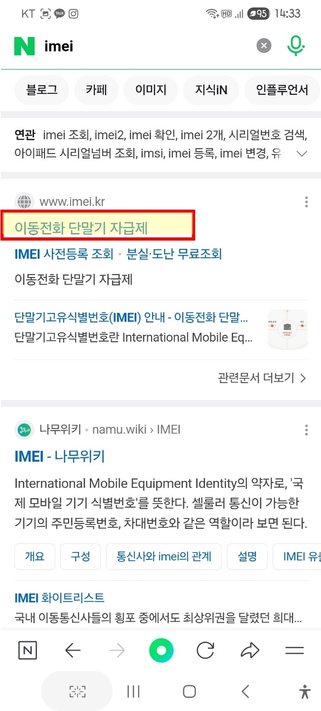 검색창을 통해 imei 입력하고 사이트로 이동해 줘