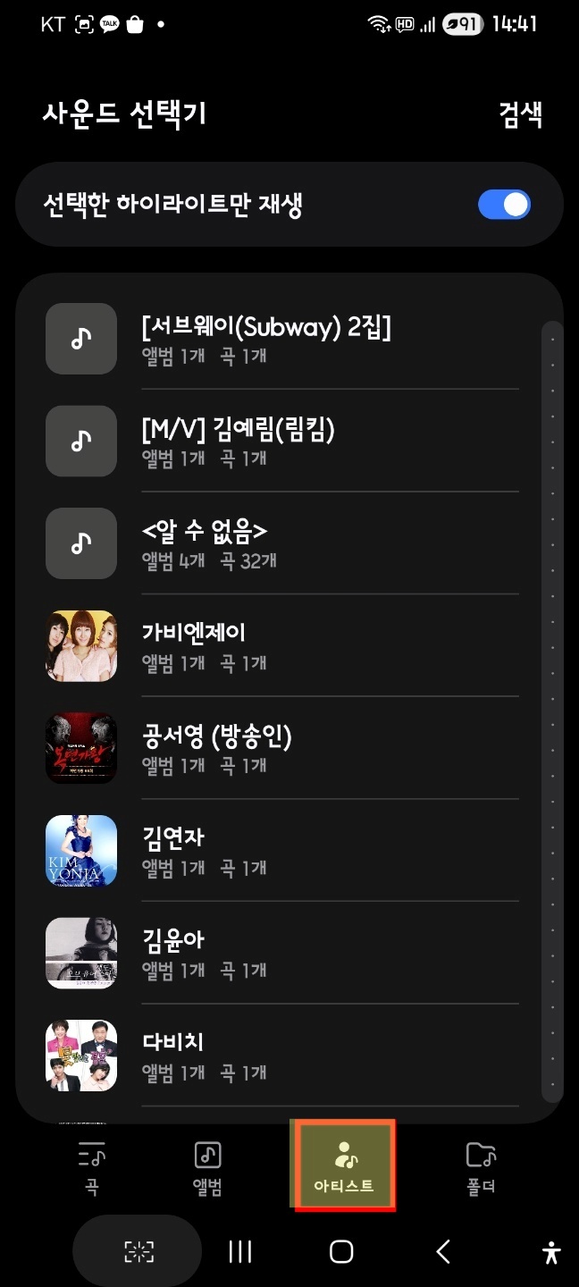 곡, 앨범, 아티스트, 폴더 등을 이용해서 검색하면 되겠어