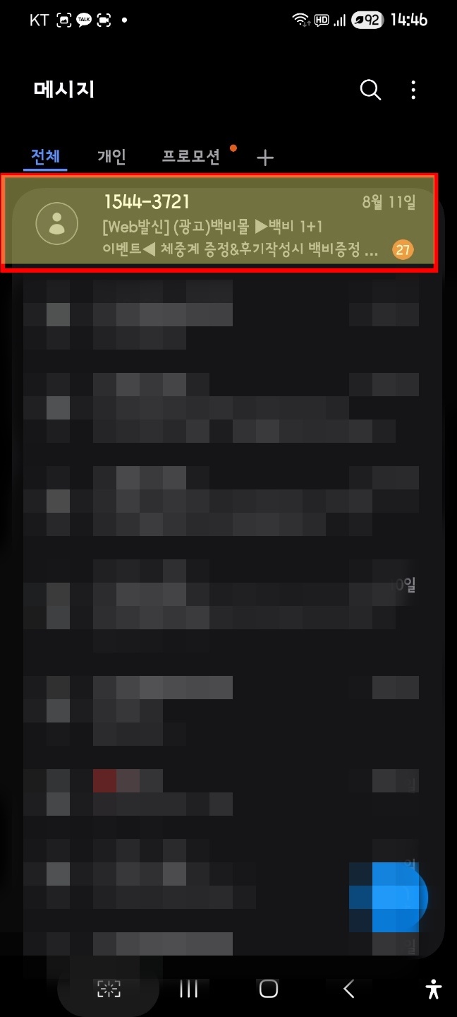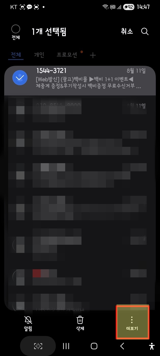 메시지를 통해 스팸 메시지를 받는다면 확인하지 않고 길게 눌러서 선택하고