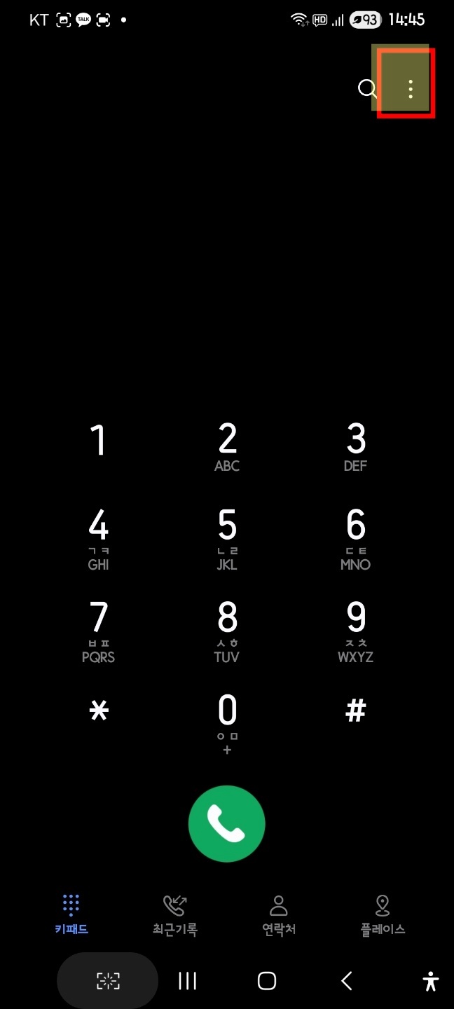 핸드폰 전화버튼을 통해 키패드 화면에서 점을 눌러 설정으로 이동해 줘