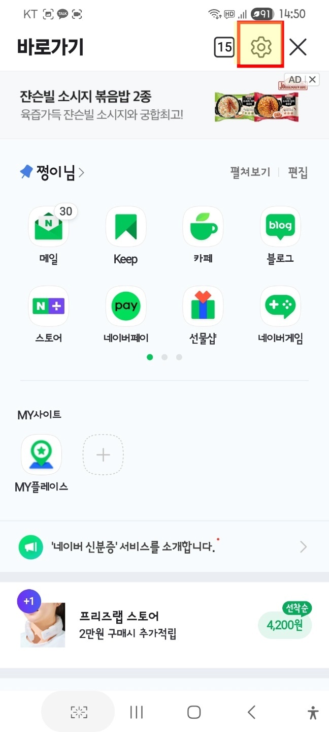 바로가기 화면에서 로그인을 진행하고 오른쪽 상단 톱니바퀴를 눌러줘