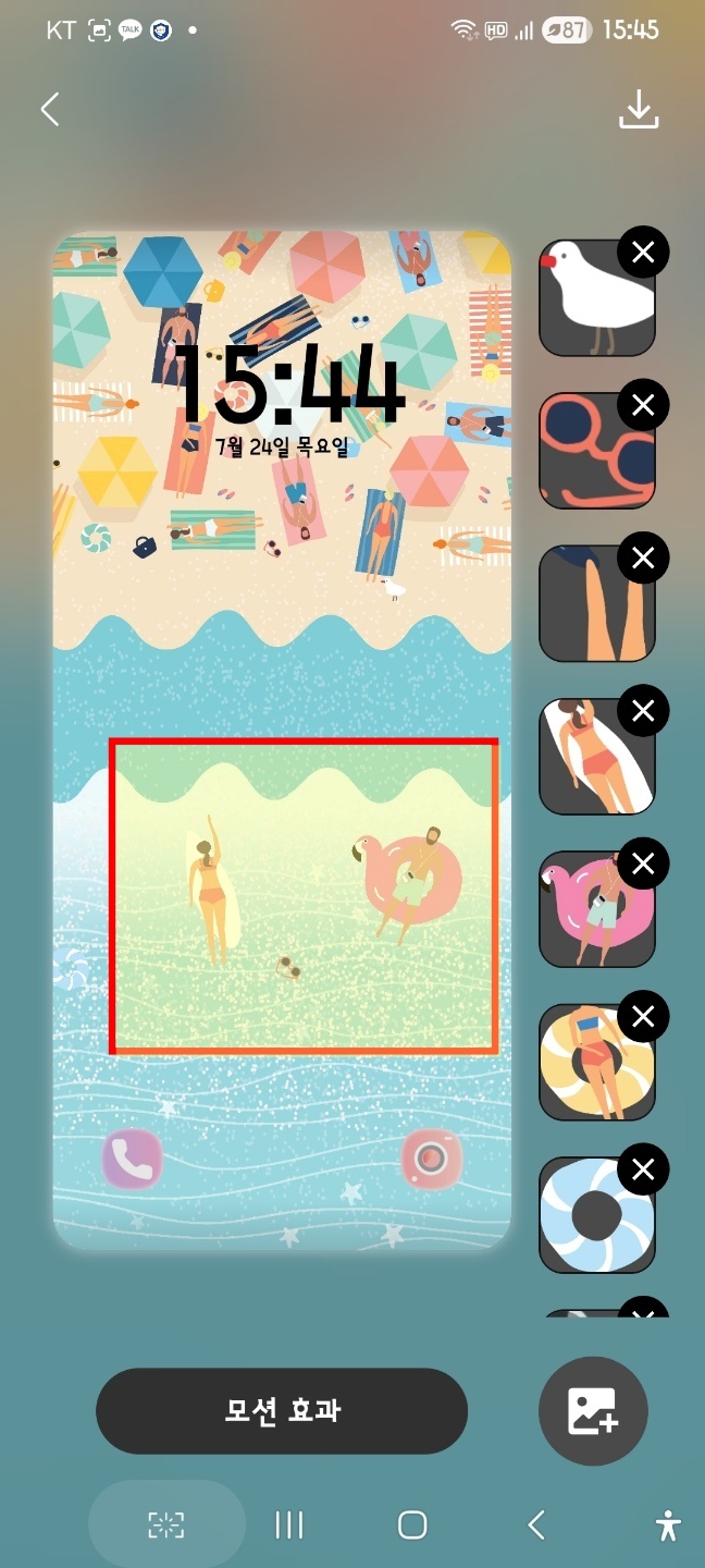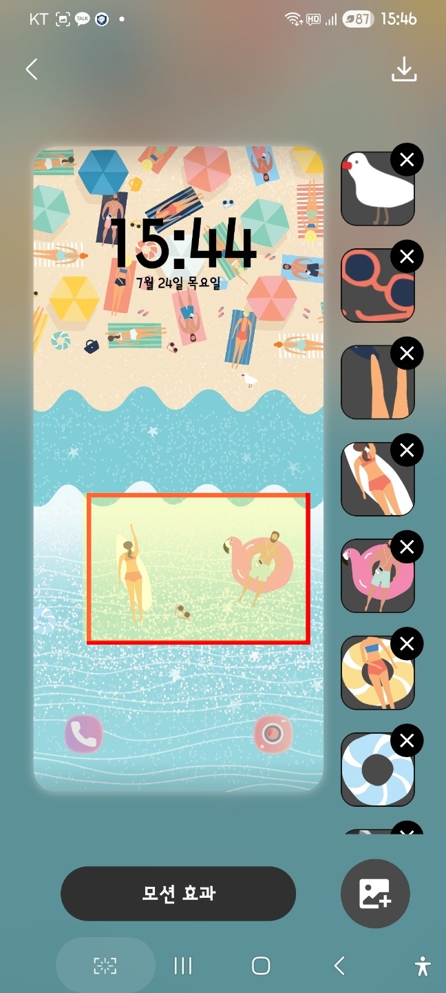 편집을 눌러서 모션 효과를 이용해 변경해 줘