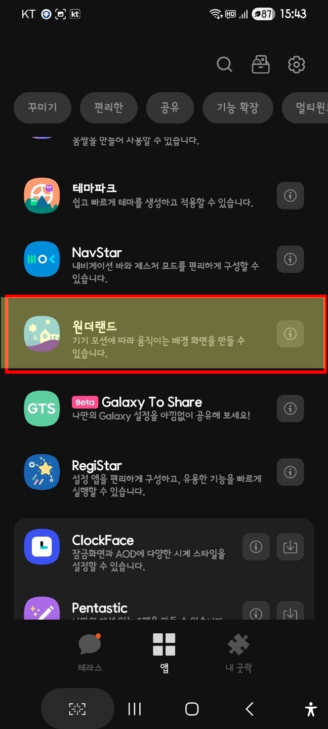 굿럭앱을 실행하고 앱을 통해 원더랜드를 찾아줘