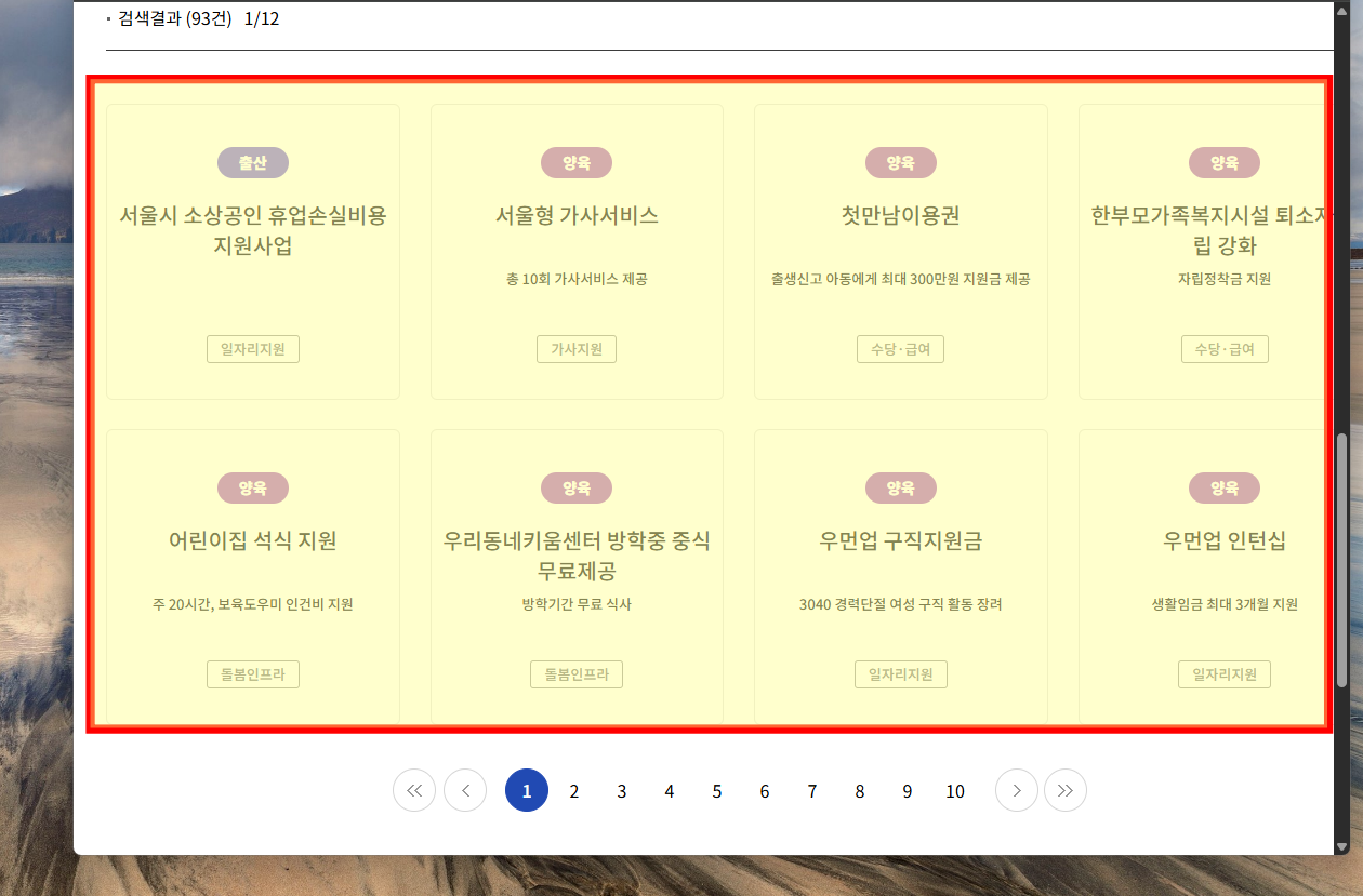 조건별 검색을 통해 지원받을 수 있는 서비스를 확인해 줘