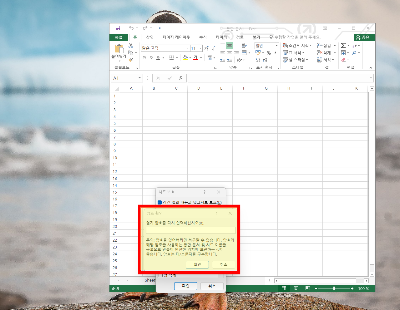 시트 보호를 해제할 암호를 입력해 줘