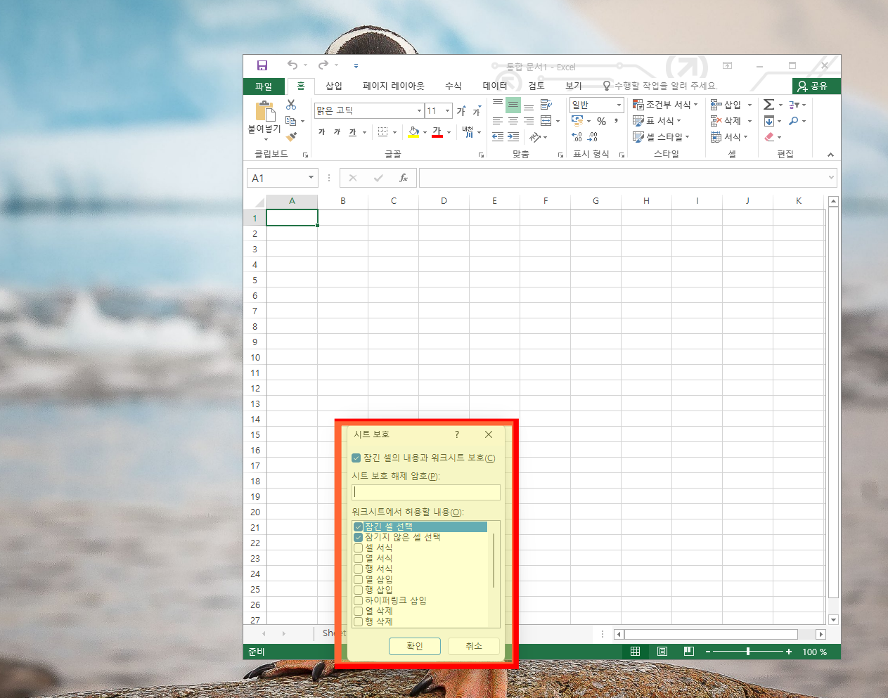 시트를 보호하면 특정 셀이나 영역을 잠금으로써,
