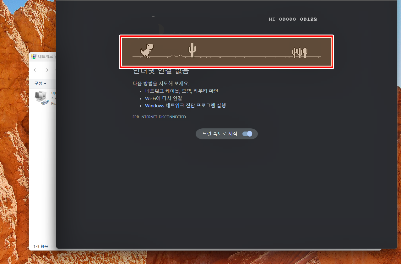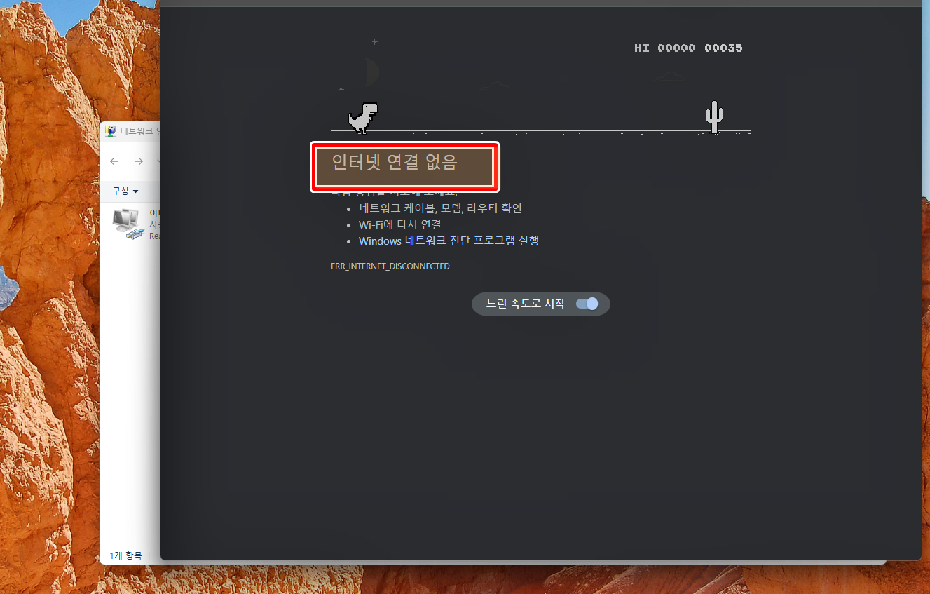 공룡 게임을 진행하기 위해서는 인터넷이 끊겼을 때 가능해