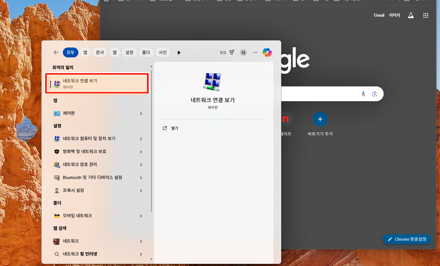 인터넷 설정이나 검색창을 통해 네트워크 검색을 진행해 줘