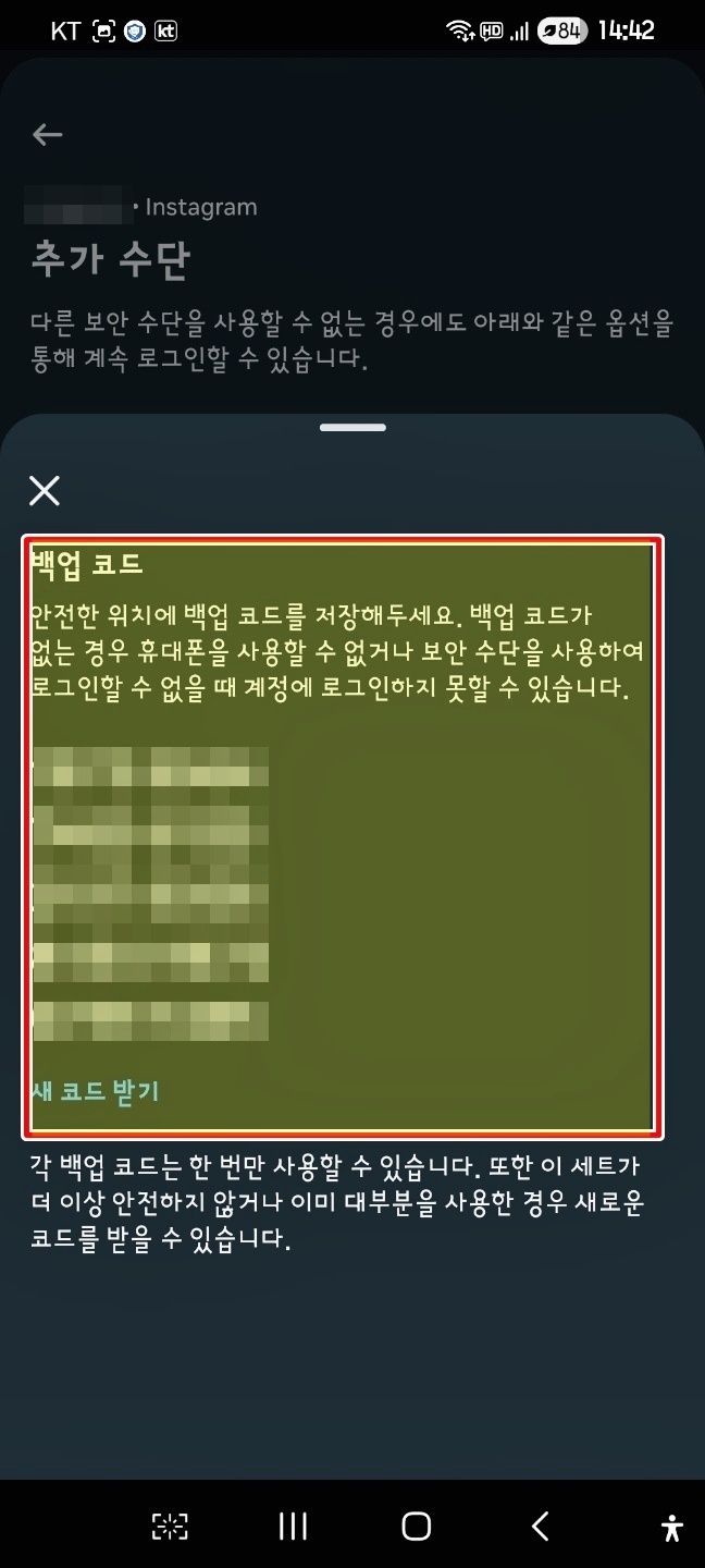백업 코드는 따로 저장해 두는 것이 중요하니
