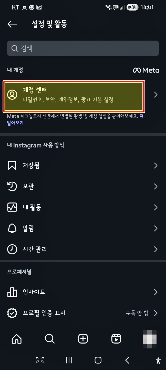설정 화면에서 계정센터를 찾아서 비밀번호 및 보안을 선택해 줘
