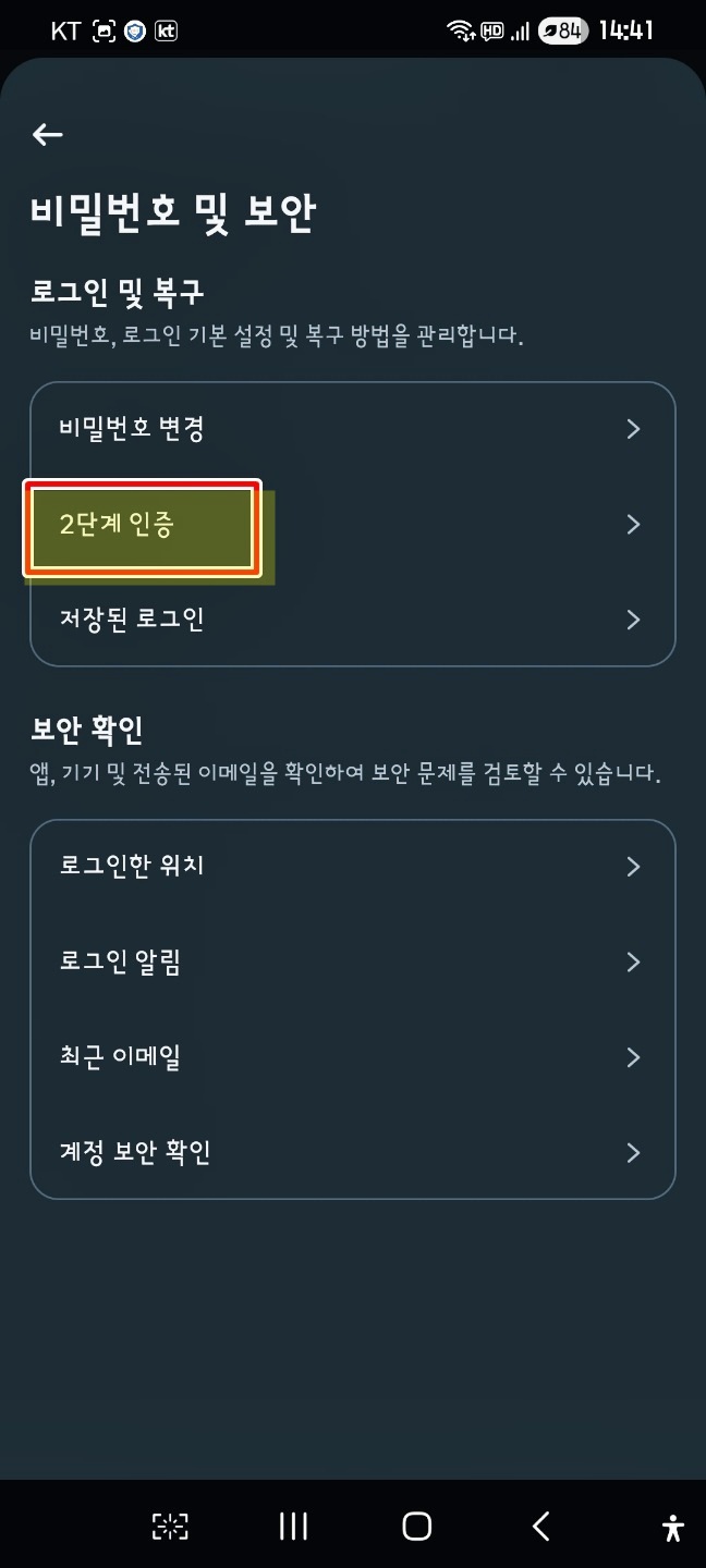 2단계 인증은 로그인 시 비밀번호 외에 추가적인 인증을 요구하여