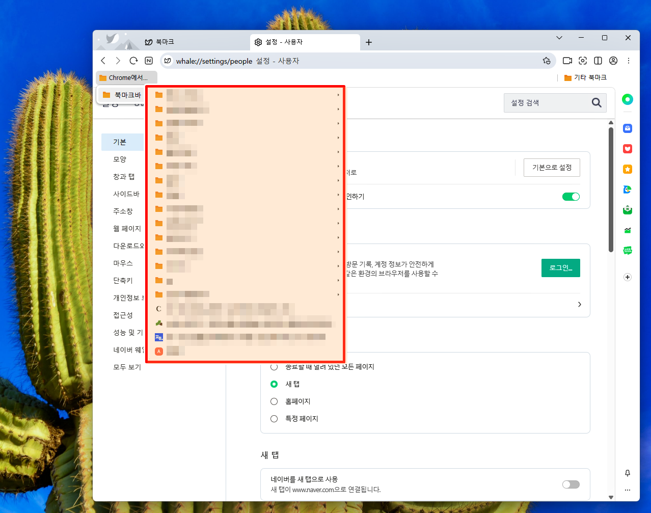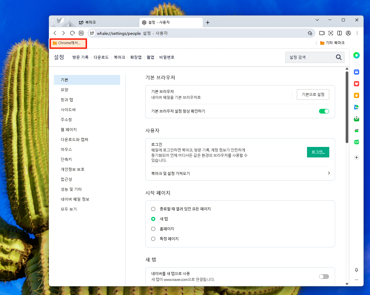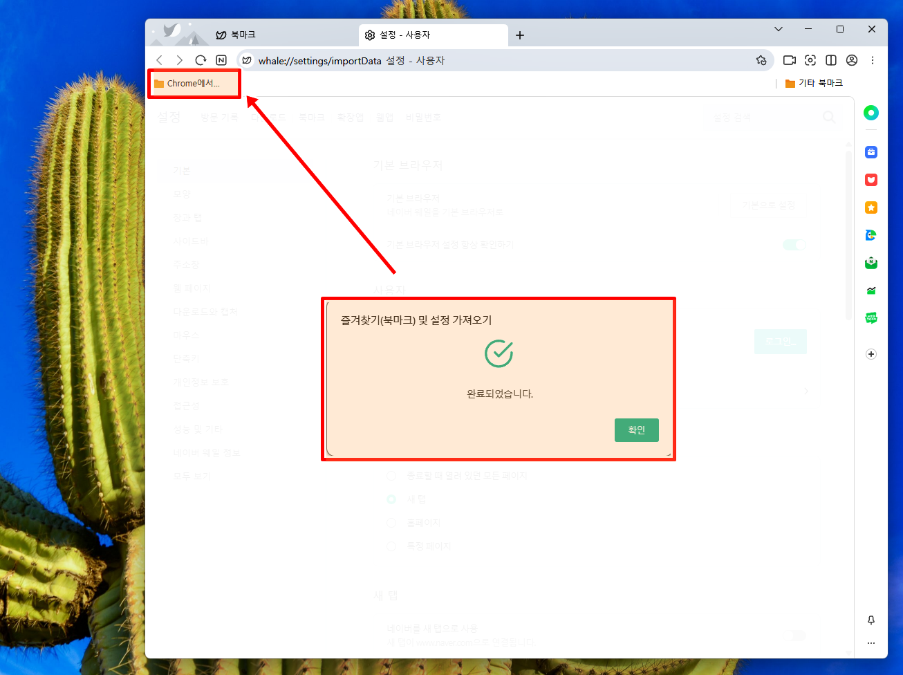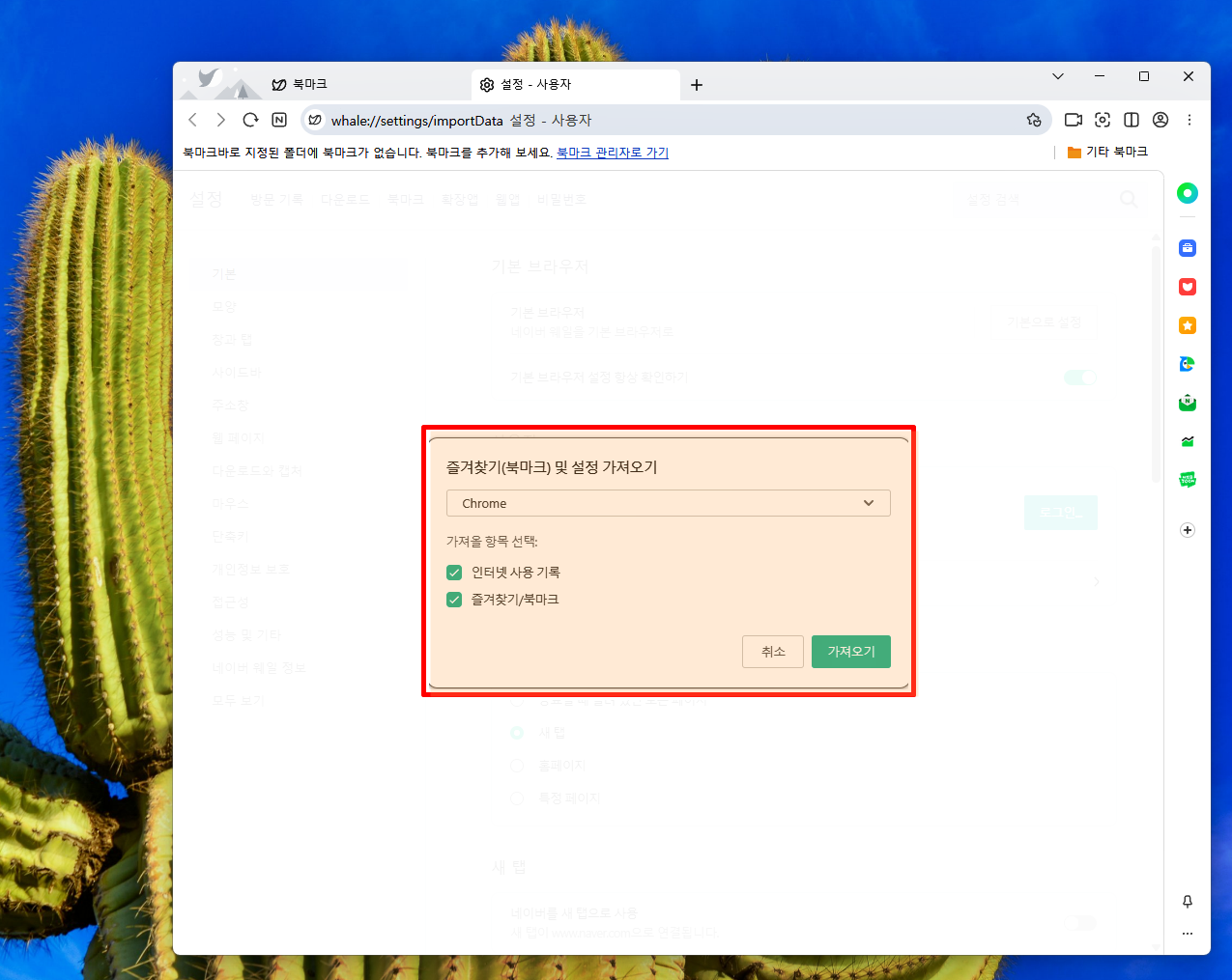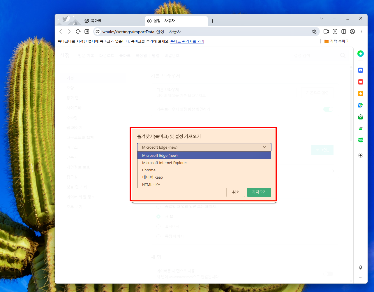 즐겨찾기 설정 가져오기 화면에서 원하는 종류를 선택하고 가져오기 눌러줘