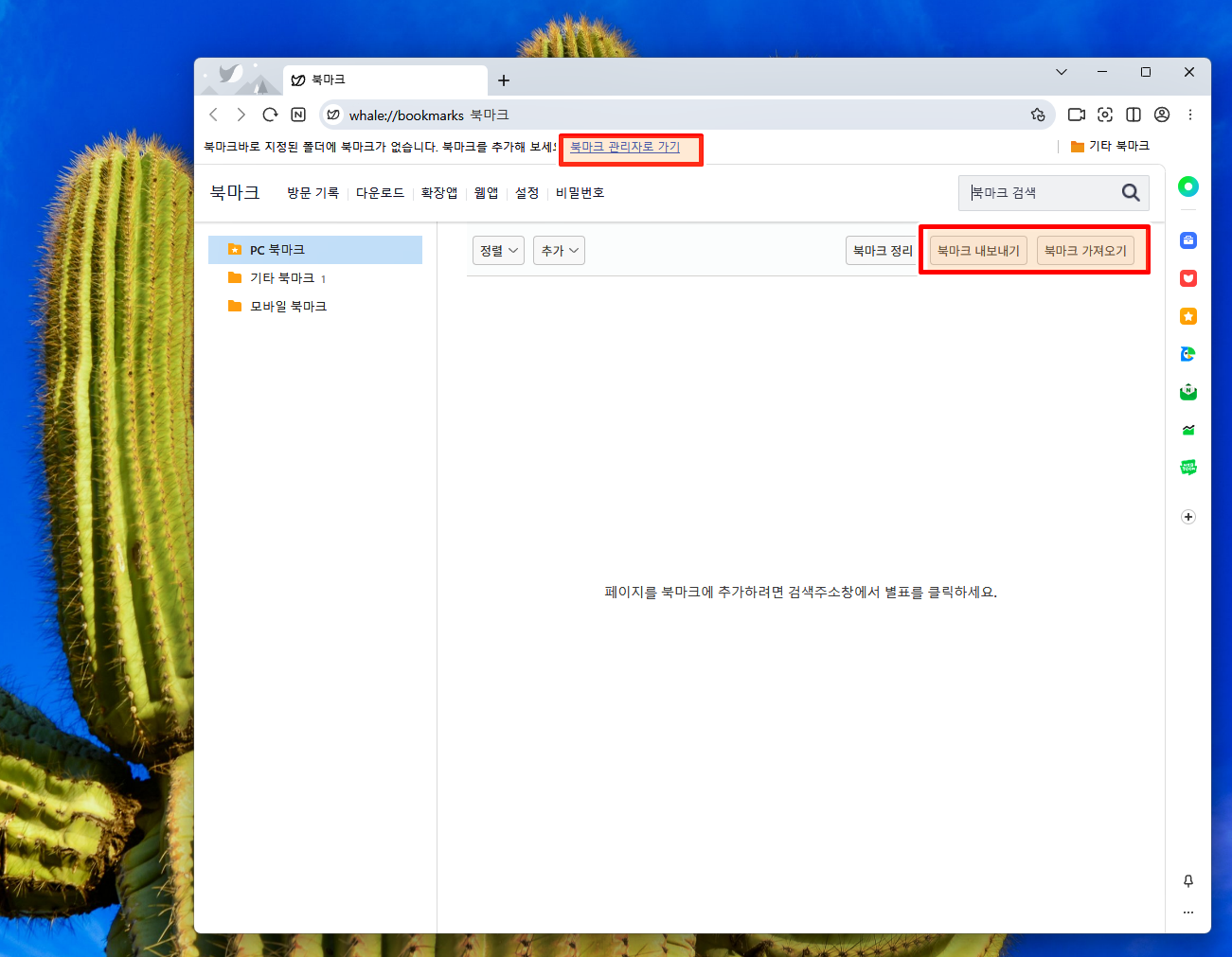 북마크 내보내기나 북마크 가져오기를 이용하는 방법도 있어