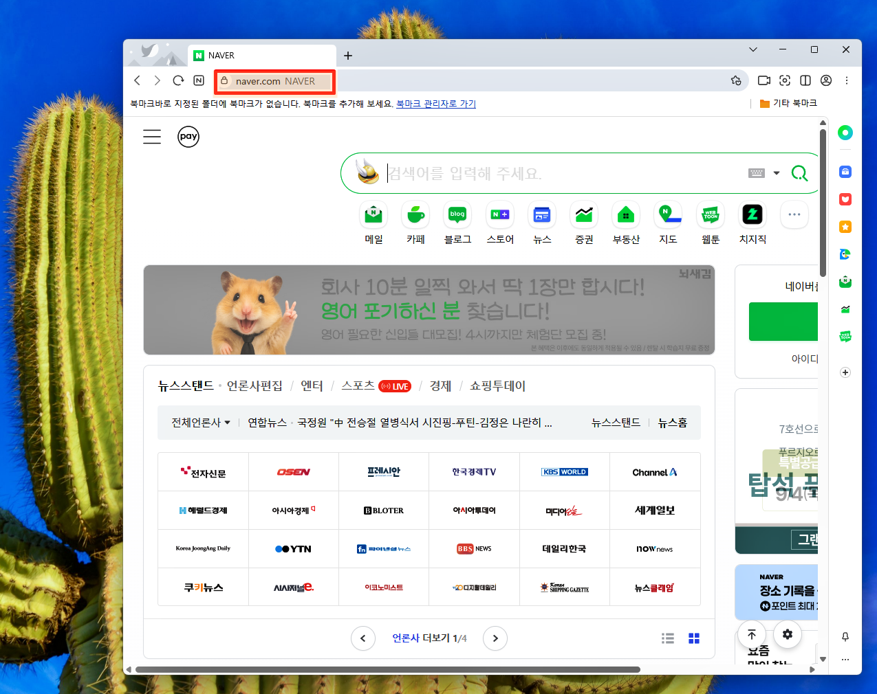북마크 목록에 해당 주소창이 추가된 모습을 확인할 수 있어
