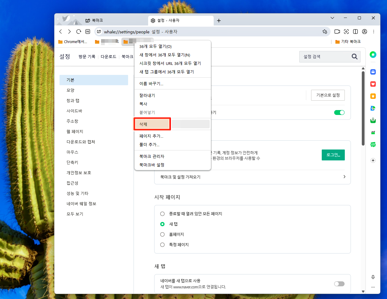 네이버웨일을 실행하고 상단의 북마크를 확인할 수 있어