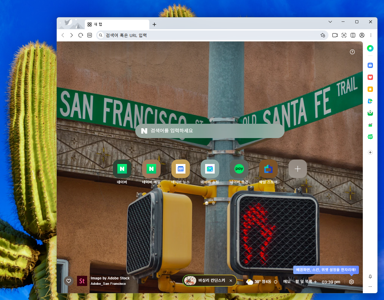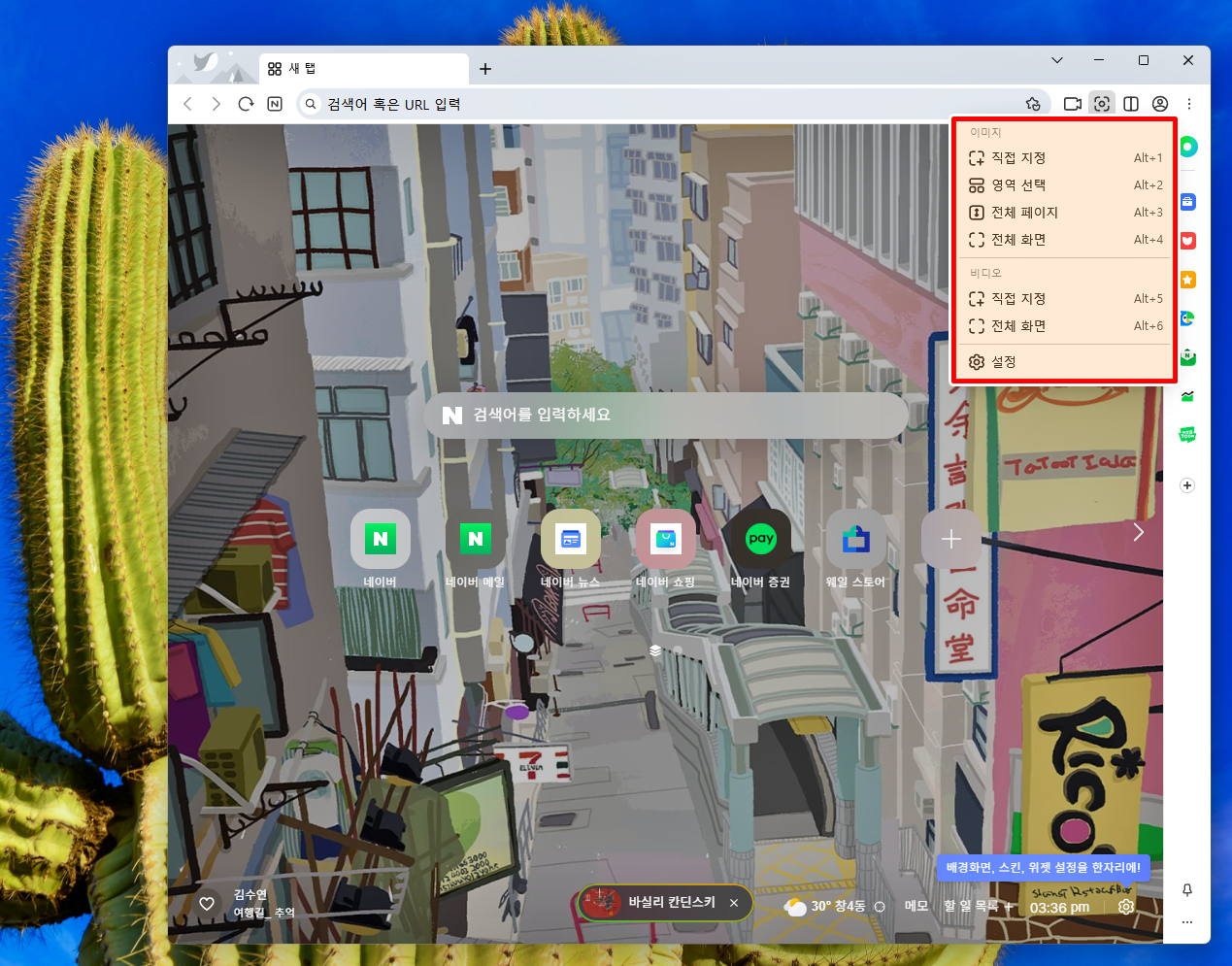 웨일 브라우저를 실행하고 오른쪽 상단의 아이콘을 확인해 줘