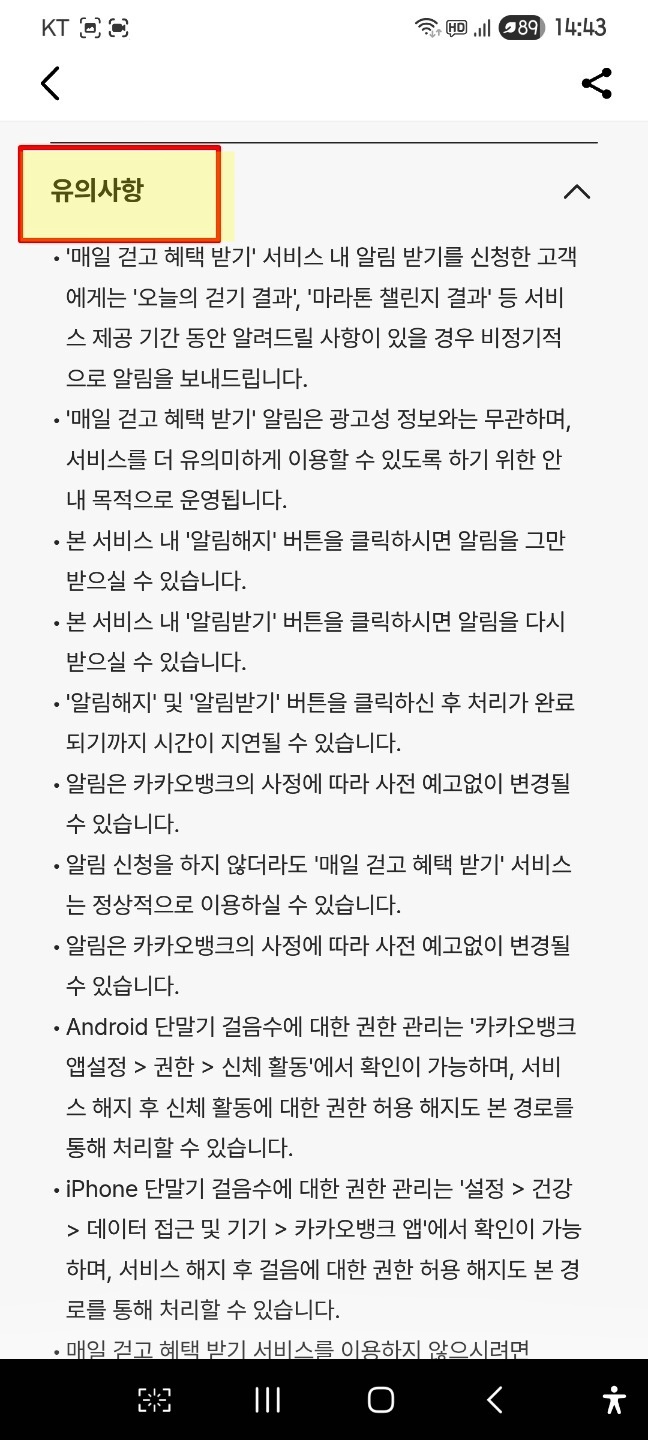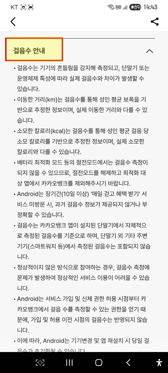 걷기를 진행할 때 핸드폰을 소지하고 있어야 걸음수 체크가 확인되겠어