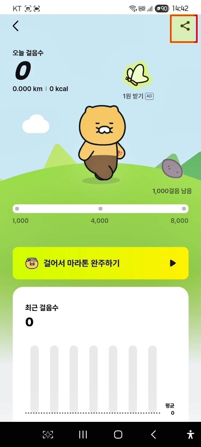 동의하고 시작하기를 누르면 오늘 걸음수에 대한 화면을 확인할 수 있겠어