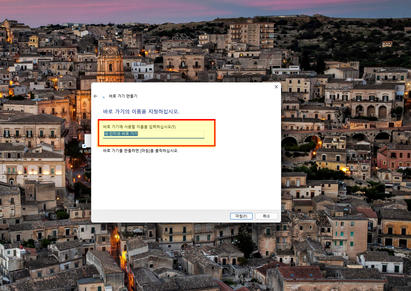 바탕화면에서 마우스 오른쪽 버튼을 눌러서 새로 만들기를 통해 바로가기를 선택해 주세요