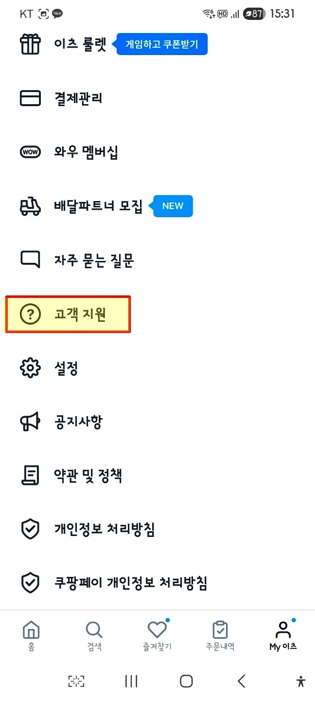 쿠팡이츠 앱을 이용하고 아래의 my이츠를 선택합니다