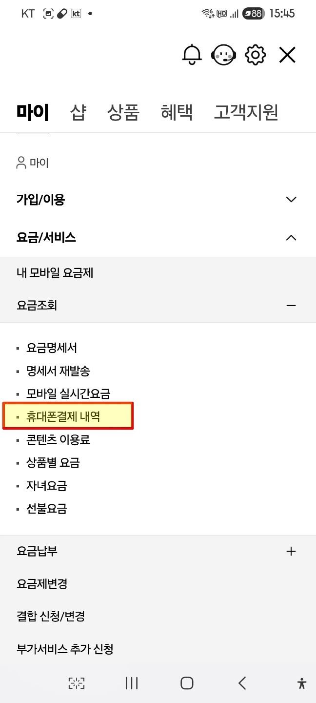 요금 조회를 이용해 휴대폰 결제내역을 참고하면 되겠어