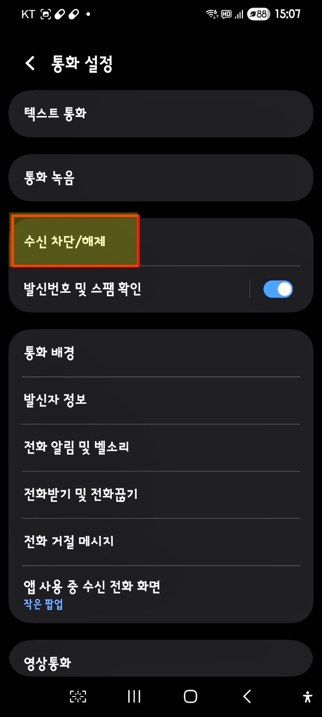 또는 전화 설정을 통해 수신 차단을 선택해 줘