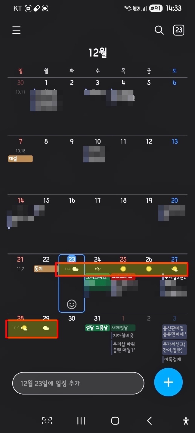 갤럭시 캘린더에서 한눈에 날씨 정보를 확인할 수 있어