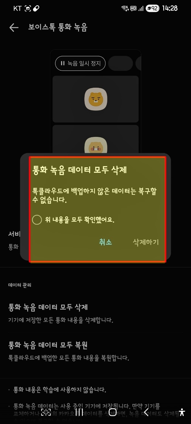 삭제가 완료되면, 통화 이력이 정상적으로 삭제되었는지 확인해