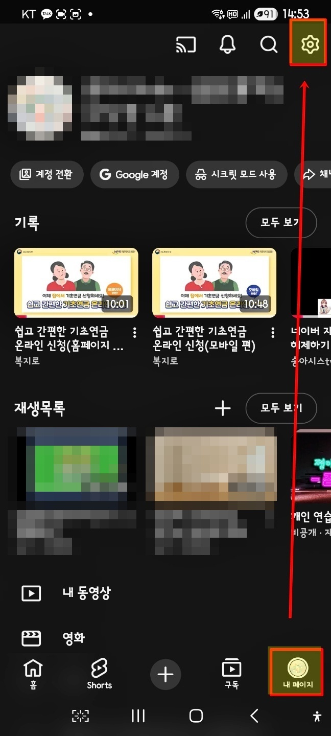 화면 오른쪽 하단에 있는 프로필 아이콘을 클릭하고 오른쪽 상단의 톱니바퀴를 눌러줘