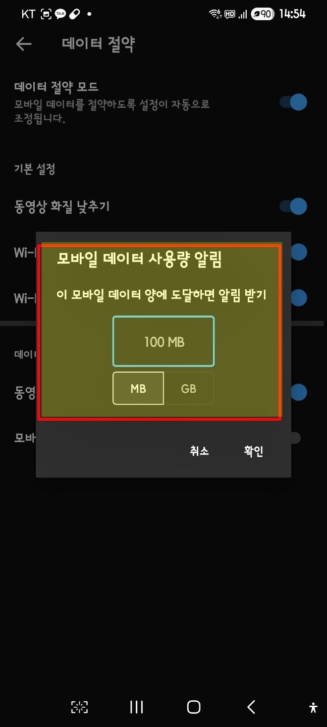 데이터 절약모드를 활성화하면 영상의 화질을 자동으로 조정하여 데이터 사용량을 줄일 수 있어